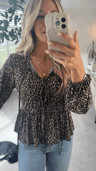 Made for busy women and moms who want an effortless, put-together look from errands to work, the Animal Print Tied Peplum delivers style without fuss. This long sleeve leopard print peplum top with three front ties is ideal when you want a polished silhouette, comfortable all-day wear, and no-gap confidence at the waist.