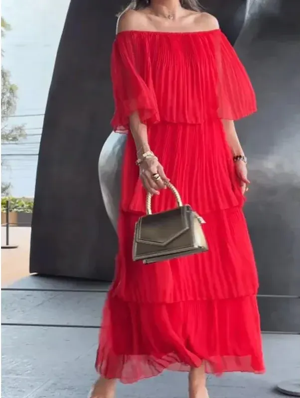 🍰✨ Step into elegance with our chiffon cake long dress! 🌸✨ Embrace grace and style in this exquisite piece. 💃👗 Make a statement at any occasion with this stunning dress!