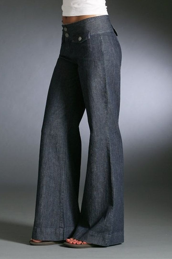 Flap Pocket Button Front Wide Leg Jeans