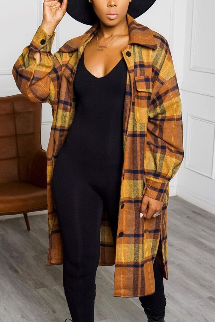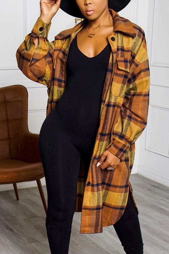Plaid Button Through Split Side Longline Shacket