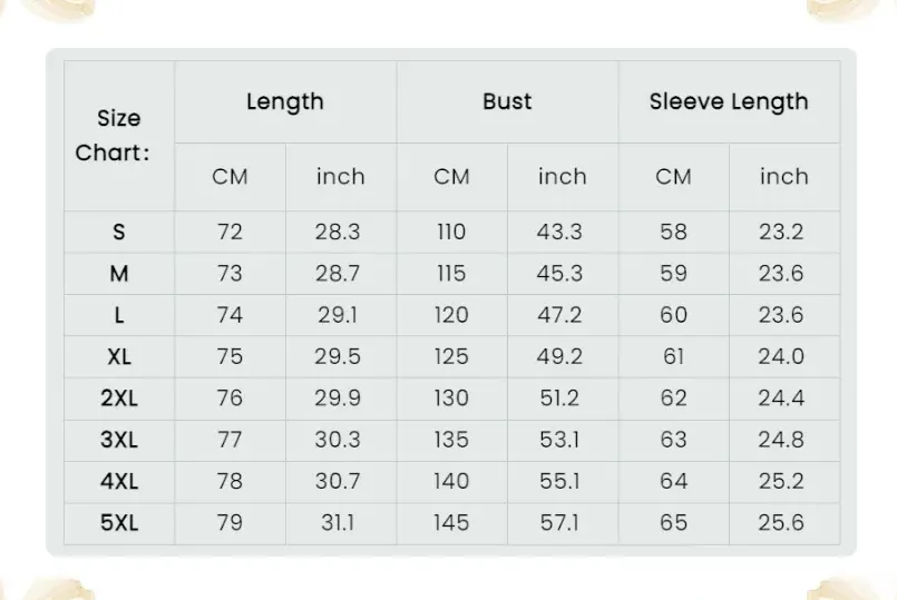 | Size: | S/M/L/XL/2XL/3XL/4XL/5XL |