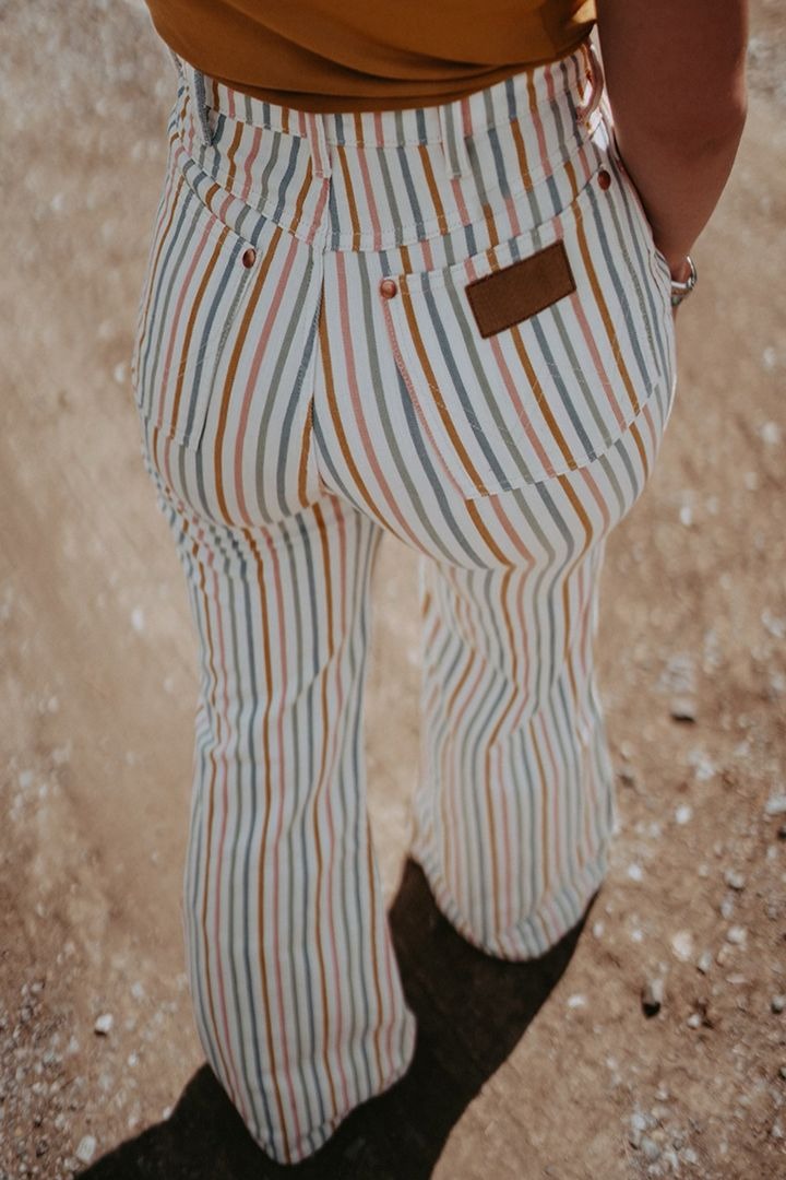 Striped Patched Detail High Waist Flare Pants