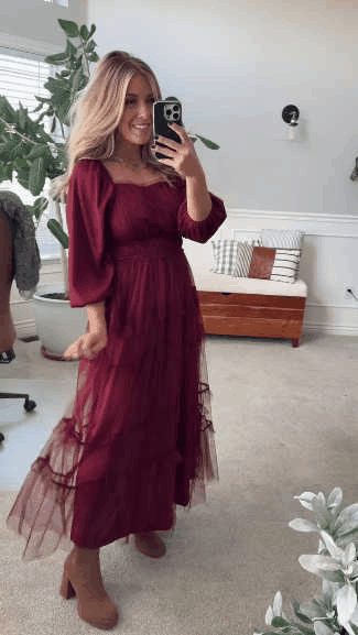 Be the belle of any ball in the Tessa Tulle Tiered Dress. With its sheer ruffle tiered tulle and long sleeves, this maxi dress pairs beautifully with a square neckline for a stunning and elegant look. Perfect for any special occasion. (Or just feeling extra fancy on a normal day.)